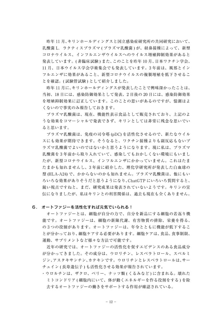 昨年11月に、キリンホールディングスが発表したことで興味深かったことは、当初、18日には、感染防御効果として発表、2日後の20日には、感染防御効果を増殖抑制効果に訂正しています。このことの思いがあるのですが、憶測はよくないので事実のみ報告しておきます。